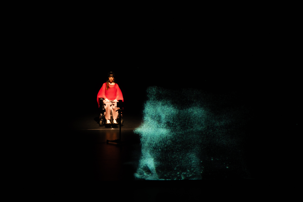 After she was diagnosed with ALS in 2023, she wanted to continue to express herself through dance. In 2025, in collaboration with NTT and global creative research and development network Dentsu Lab, she performed Waves of Will, a world-first live performance that uses EEG-based signals to trigger and modulate predefined dance expressions. The system captured her brainwaves and analyzed their patterns to detect a specific, learned EEG signal that allowed her to select predefined movement options at the moments she chose, and those movements were executed by a digital virtual dancer. Rather than responding to passive stimuli, the interface enabled Breanna to actively communicate her intention. She used this system in pre-production to help shape the artistic direction of the piece, and during the performance itself to select the movements that the virtual dancer would execute.
